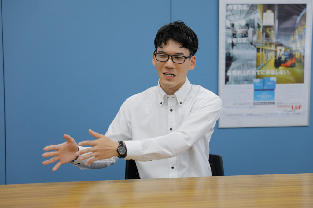 当時は面接や企業説明もオンラインでしたので、実際にフォークリフトが並ぶ現場を見たのは入社してからでした。アルバイトでハンドリフトの経験がありましたが、入社後はフォークリフトの仕組みから学び、フォークリフトの免許を取得しました。
