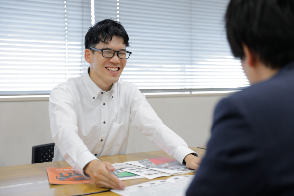 本格的に就活を始めようとした時期がコロナ禍と重なり、企業説明会や対面での面接が次々と中止となるなど、就職そのものが厳しい状況でした。そうした中で当社を希望したのは、親が乗っていたのがトヨタ車で、子どものころから身近だったこと。また、学生時代のアルバイトで接客の楽しさを知ってから、人と接する営業にも興味があったからです。