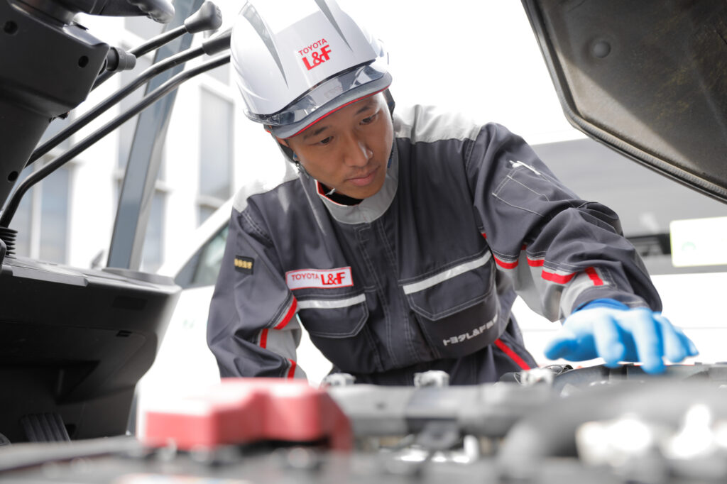 フォークリフトの整備士はフィールドエンジニアになって一人前。入社当初は複雑な想いもありましたが、良い環境の中で一人前になることができ、今になってみれば、この会社で良かったと思っています。 入社後は、フォークリフトの車検ができる検査員の資格を取得したほか、メーカー検定の産業車両技能検定1級、国家資格の産業車両整備技能士1級も取得。今はどんな故障にも対応できる自信があります。入社当初は、あこがれの自動車整備士になれず戸惑いもありましたが、今はL&Fに感謝しています。