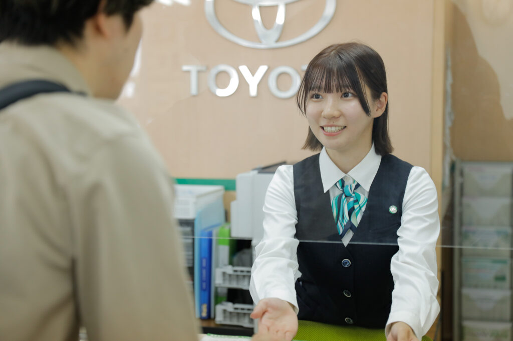 医薬品の販売資格を取得する学校の学生だった時、動画サイトでクラウンのカッコ良さに気付き、外出先では目の前を走るセンチュリーのオーラに圧倒され、すっかりトヨタ車に魅了されてしまいました。それからは、トヨタ車に関わる仕事に就きたいと思うようになり、接客と事務の両方ができ、配車業務もあることから、当社に応募しました。