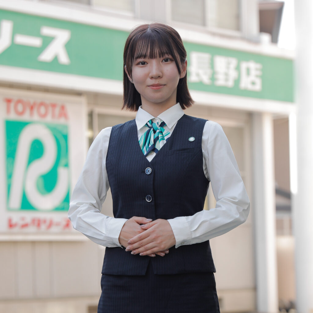 思っていた以上に車に関われる、良い意味のギャップがあります。仕事は、レンタカーの受け付けだけでなく、車の準備やお客さまのお出迎え、保有車の管理など、車に関わる機会が多く、車の知識が自然についてうれしいです。