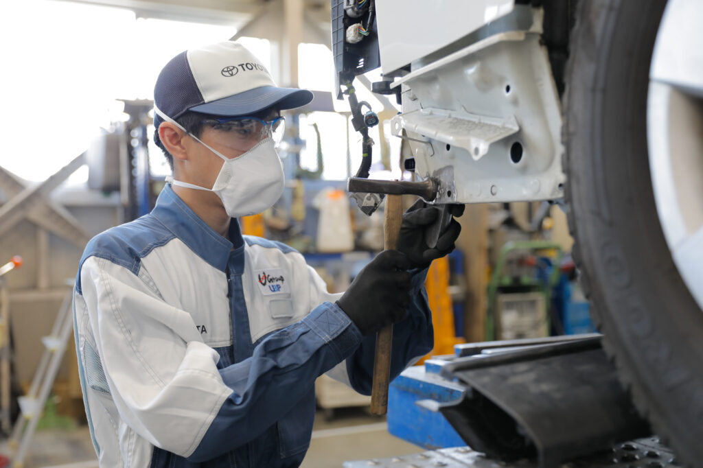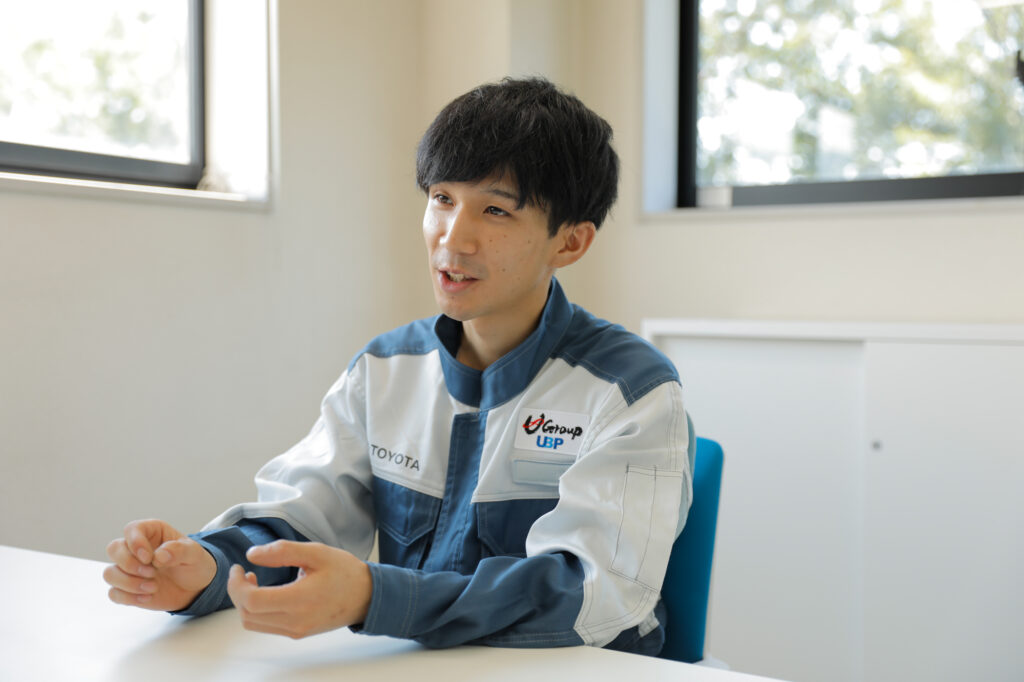 就活で工場見学をした時、整備士の方が最新のトヨタ車に触れている姿を見て、自分も最新技術を搭載した車に触れたいとの思いが強くなりました。