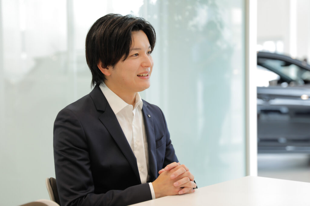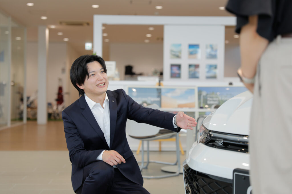 納車の時、お客さまが笑顔で「ありがとう」と言ってもらえることが一番うれしいですね。また1台の車が、お客さまの生活の中でどんな意味を持つのか一緒に考える課程にも、やりがいを感じます。仕事で乗ることが多いのか、ご家族でレジャーに使われることが多いのか、など乗る人数も目的もさまざまです。
